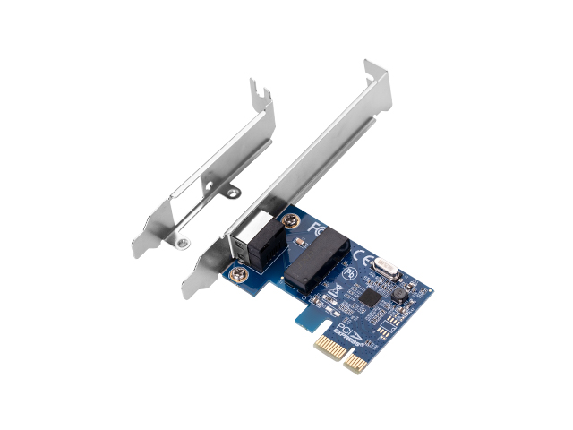 Projetada para atender às especificações PCI Express Revisão 1.0a, suporta barramento PCI Express de 1 pista 2,5 Gbps, totalmente compatível com IEEE 802.3, IEEE 802.3u, IEEE 802.3ab; transceptor integrado 10/100/1000, e LEDs indicam o status da transmissão de dados.