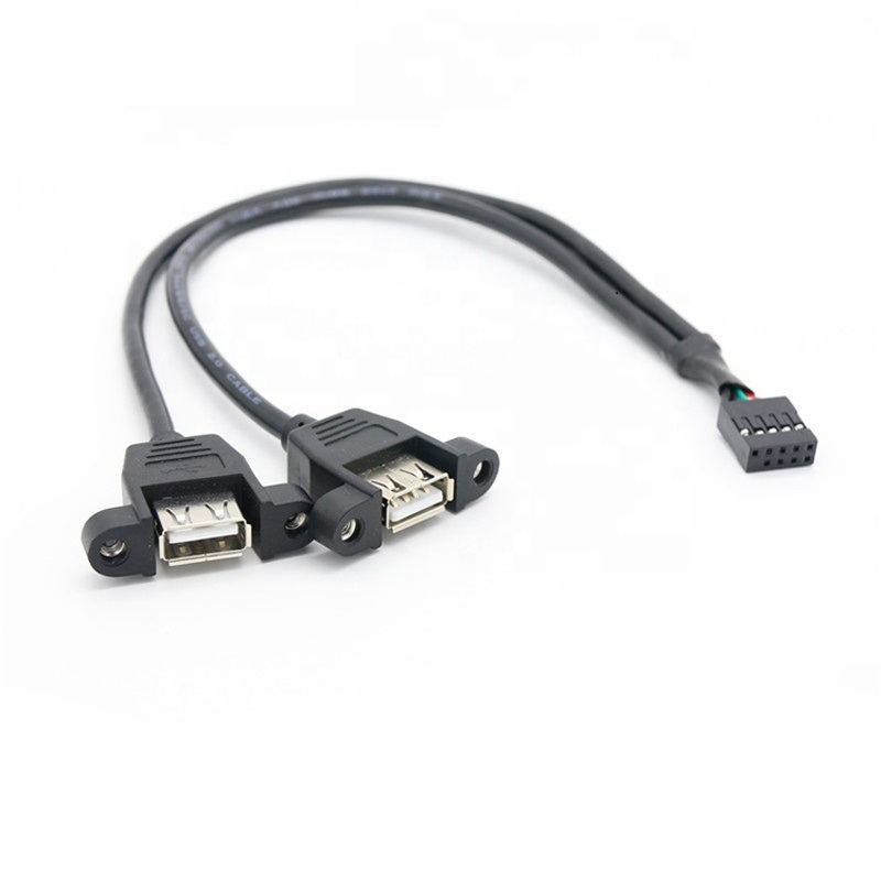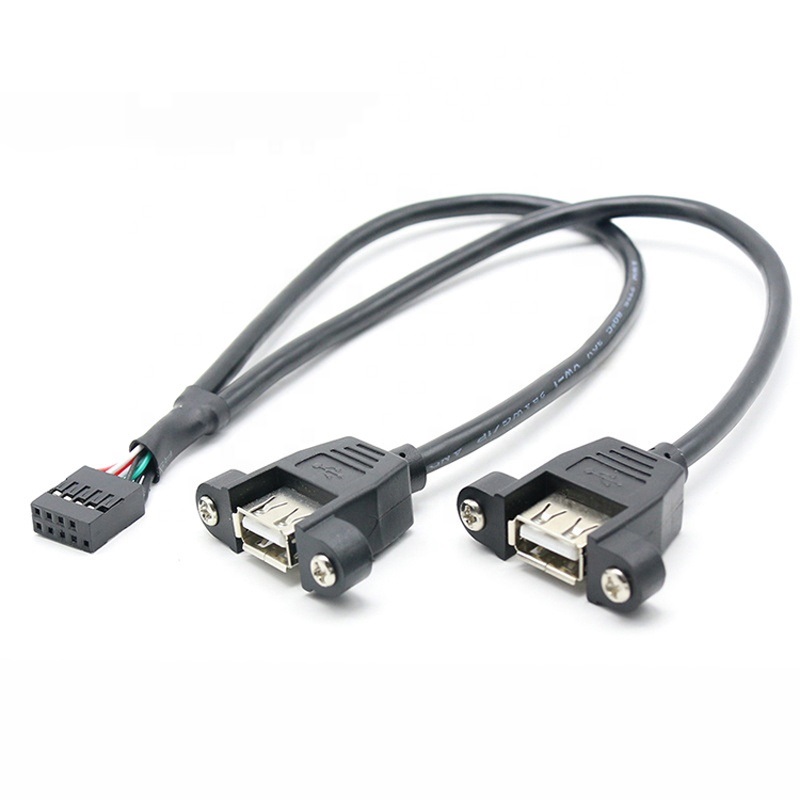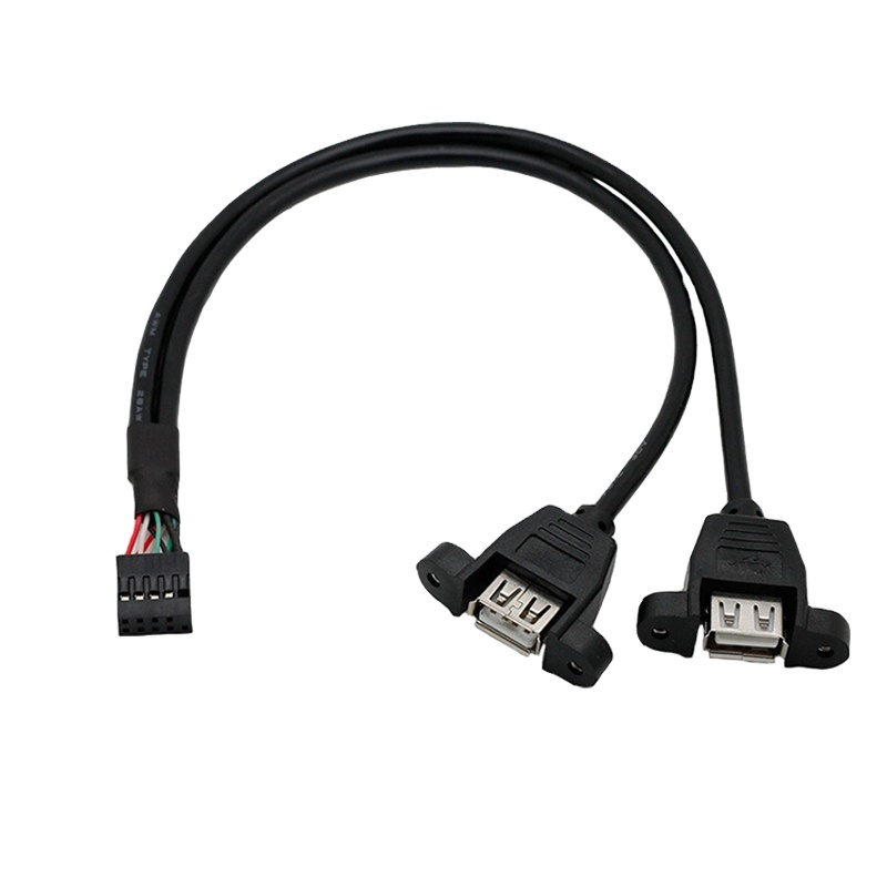 Conecta a porta USB 2.0 da placa mãe do seu computador disponibilizada em barra de pinos 2×5 passo 2,54mm, a 2 portas USB-A fêmeas, montadas no painel da CPU, que podem ser instaladas em um computador, ATM, POS entre outros dispositivos.