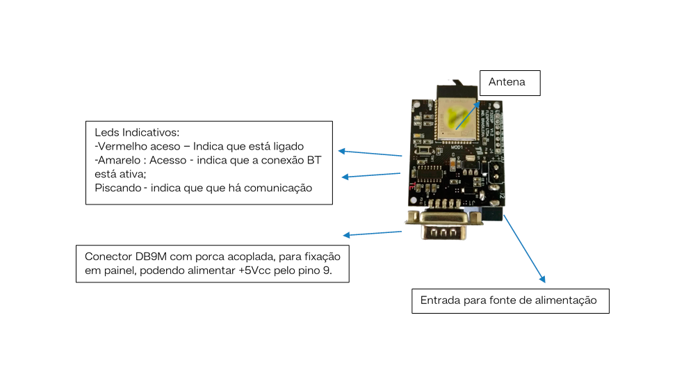- Led amarelo indicação da conexão Bluetooth ativa, pulsa indicando troca de dados