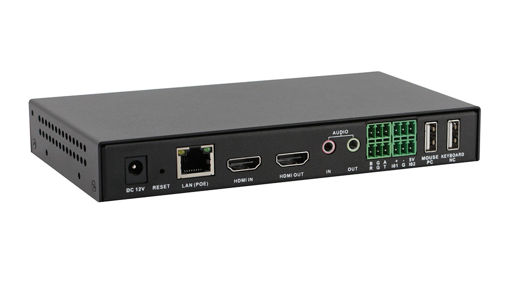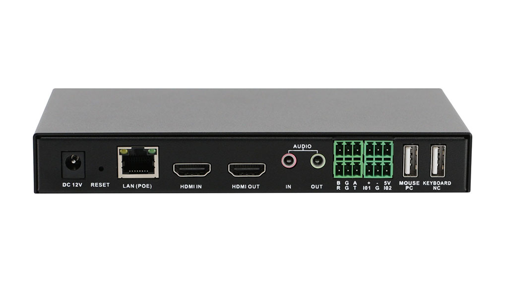 O painel frontal possui uma tela LCD para mostrar nome, endereço IP e informações de versão, será super útil quando fizer as configurações do sistema. Com fonte de alimentação DC e POE para fornecer a instalação mais fácil; quando definido a unidade funcionando como codificador, ele pode suportar 1 saída de loop HDMI com áudio de 3,5 mm embutido e desincorporado, suporta 1 * RS232, 1 * RS485, 1 * Relay, 1 * portas de controle central de I/O, e também a transmissão de teclado e mouse.