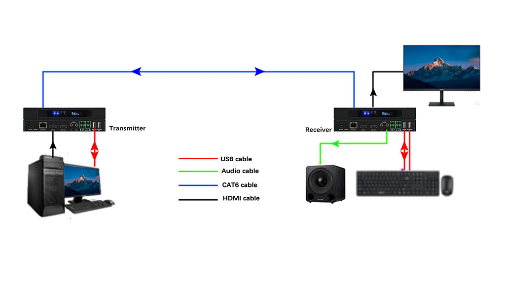 Este é um HDMI sobre IP 4K com funções Matrix, Video Wall e sistema Multiview, o transmissor e receptor é a mesma unidade, ele pode ser comutado / definido pelo software do PC para funcionar como codificador ou como decodificador que pode fornecer mais flexibilidades de aplicação e economizar os custos.