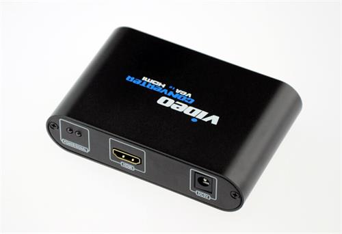 Este CONVERSOR VGA para HDMI Box, é um dispositivo que pode converter um vídeo analógico a partir do Desktop, PC ou uma fonte VGA, para entregá-lo a um monitor de alta definição padrão HDMI. Além do recurso de vídeo, existe uma interface de entrada de áudio estéreo de 3,5 mm, de modo que um PC ou desktop ou até notebook com saídas analógicas comuns de Vídeo VGA e áudio P2, podem exibir som e imagem digitais de alta definição HD(1080P) sincronizados, em qualquer monitor, TV ou Telão com entrada HDMI.